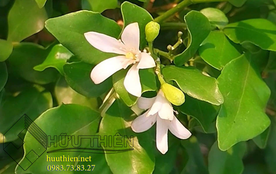 Hoa màu trắng, tâm màu vàng, có 5 cánh, mọc trên một cọng dài kết thành chùm ở ngọn nhánh hay kẽ lá.