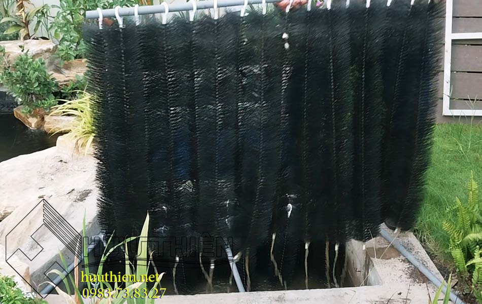 Ngăn 2: Đây là ngăn lọc thô các chất lơ lửng sau khi tràn qua ngăn 1. Ngăn 2 chứa các thanh chổi lọc. Đối với hồ nhỏ thì ngăn 1 và 2 chung với nhau 1 ngăn.