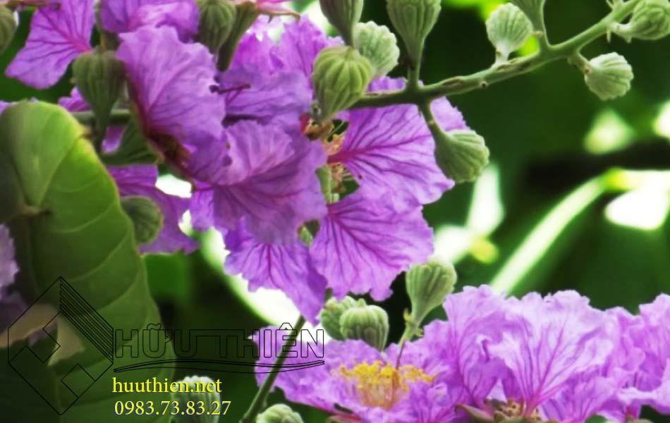 Hoa có 6 cánh mỏng, màu tím hay tím hồng, kết thành chùm ở đầu cành. Cây cho hoa vào đầu mùa hè.