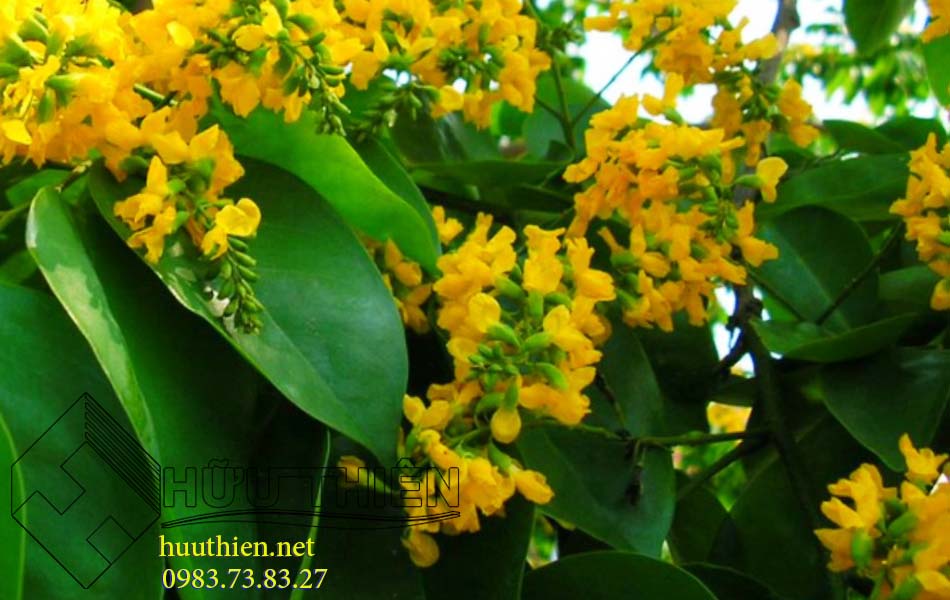 Hoa có 5 cánh, đường kính từ 4-7cm, màu vàng tươi, kết thành chùm rủ dài từ 20-40cm. Cây cho hoa từ tháng 5-11.