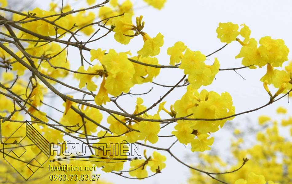 Hoa hình chuông, màu vàng tươi, đường kính khoảng 6.5cm, mọc thành chùm ở đầu cành. Cây hầu như rụng hết lá và cho hoa nở rộ vào khoảng từ tháng 3 đến tháng 5.