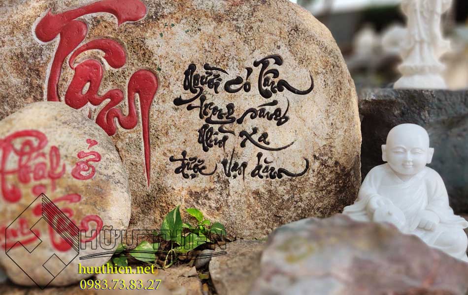 Đá tự nhiên trong xây dựng và trang trí sân vườn khá phong phú. Một số loại như đá lát nền, đá lát lối đi, đá ốp tường, cầu thang… Trong đó, tạo dấu ấn cho sân vườn như một tác phẩm nghệ thuật, phải kể đến là đá tảng khắc chữ. Ngoài vẻ đẹp tự nhiên và độc đáo bởi những hình dáng không trùng lập. Đá tảng khắc chữ mang đến giá trị tinh thần. Thể hiện dấu ấn cá nhân thông qua những nội dung được khắc trên đá. Mang tính chất của đá tự nhiên, sản phẩm này có độ bền vượt thời gian. Hãy cùng với Hữu Thiên tìm hiểu về nghệ thuật đá tảng khắc chữ. Phân loại và ứng dụng trong trang trí sân vườn như bài viết sau đây.