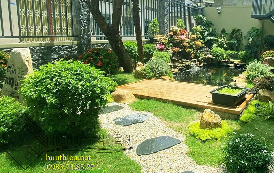 Vui lòng liên hệ với công ty Hữu Thiên theo số điện thoại / zalo 0983.73.83.27 để được tư vấn, thiết kế sân vườn đẹp trước nhà. Sân vườn phù hợp với kiến trúc, mang đến thẩm mỹ và phong thủy cho ngôi nhà.