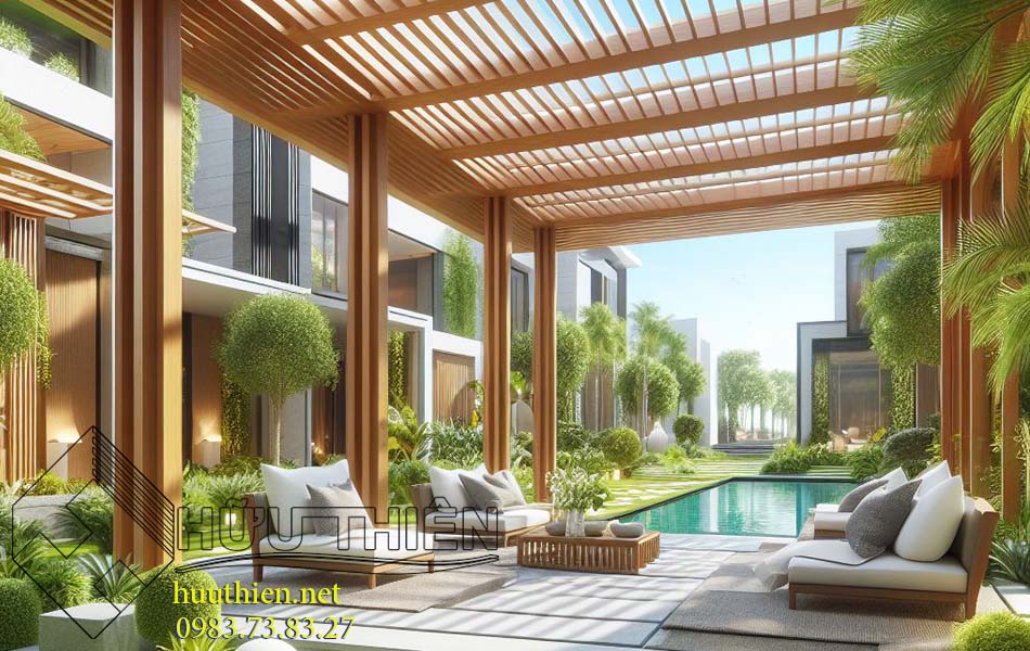 Giàn che Pergola ở vị trí trung tâm